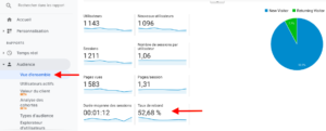 Vous pouvez vérifier votre taux de rebond dans Google Analytics, sous Audience -> Vue d’ensemble